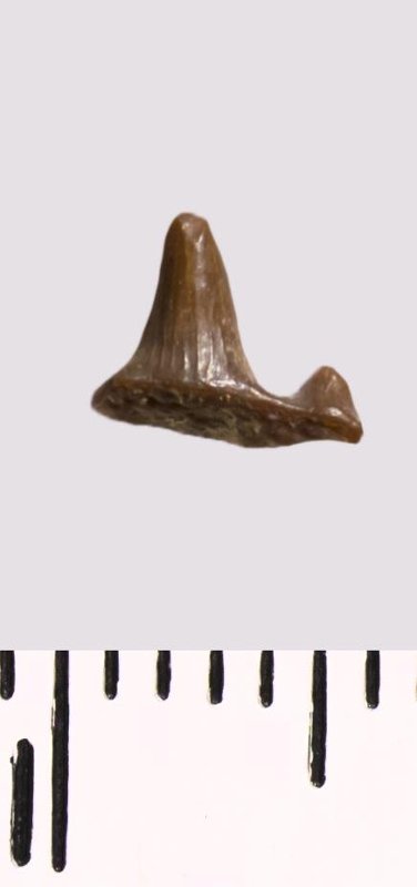 Зуб (фрагмент). Акула. Hybodus sp. Классификация: Хордовые Chordata, Позвоночные Vertebrata, Хрящевые рыбы Chondrichthyes, Пластиножаберные Elasmobranchii