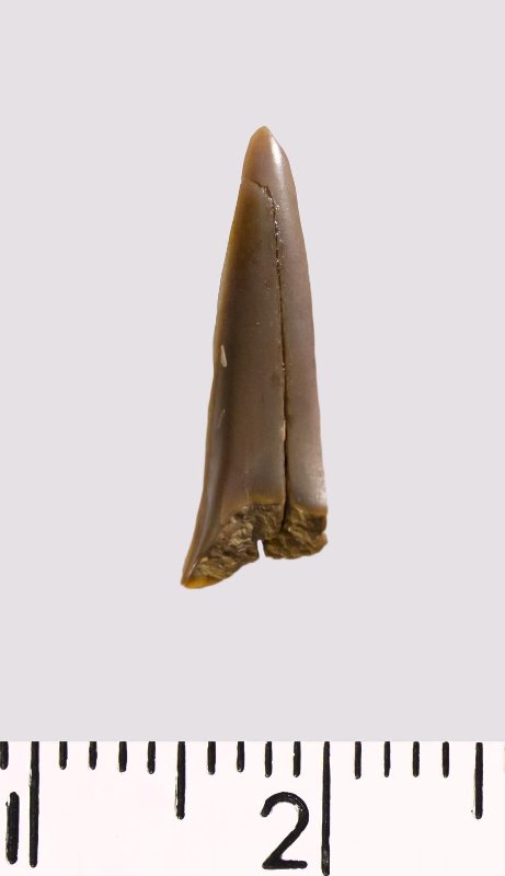 Зуб (фрагмент). Акула. Cretolamna sp. Классификация: Хордовые Chordata, Позвоночные Vertebrata, Хрящевые рыбы Chondrichthyes, Пластиножаберные Elasmobranchii