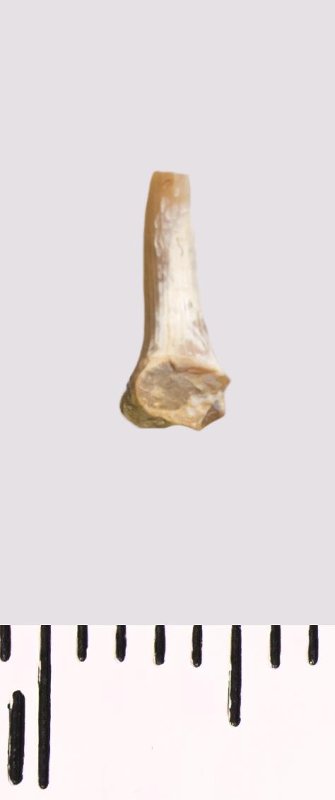 Зуб (фрагмент). Акула. Scapanorhynchus rhaphiodon Agassiz, 1843. Классификация: Хордовые Chordata, Позвоночные Vertebrata, Хрящевые рыбы Chondrichthyes, Пластиножаберные Elasmobranchii