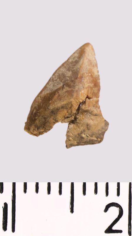 Зуб (фрагмент). Акула. Squalicorax falcatus (Agassiz, 1843). Классификация: Хордовые Chordata, Позвоночные Vertebrata, Хрящевые рыбы Chondrichthyes, Пластиножаберные Elasmobranchii