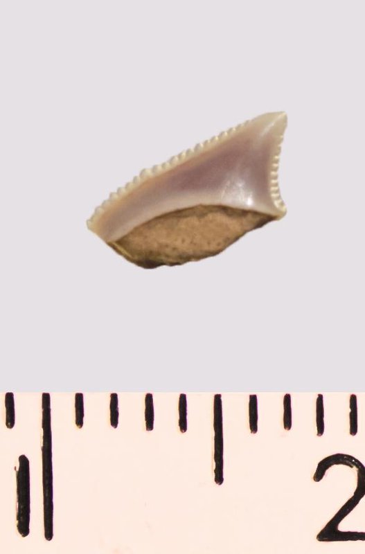 Зуб (фрагмент). Акула. Anacorax kaupi (Agassiz, 1843). Классификация: Хордовые Chordata, Позвоночные Vertebrata, Хрящевые рыбы Chondrichthyes, Пластиножаберные Elasmobranchii