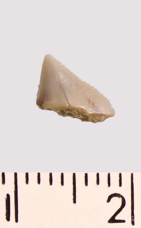 Зуб (фрагмент). Акула. Anacorax kaupi (Agassiz, 1843). Классификация: Хордовые Chordata, Позвоночные Vertebrata, Хрящевые рыбы Chondrichthyes, Пластиножаберные Elasmobranchii