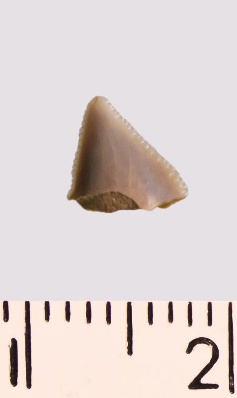 Зуб (фрагмент). Акула. Anacorax kaupi (Agassiz, 1843). Классификация: Хордовые Chordata, Позвоночные Vertebrata, Хрящевые рыбы Chondrichthyes, Пластиножаберные Elasmobranchii