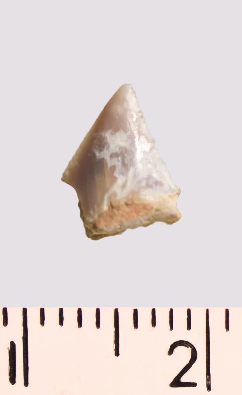 Зуб (фрагмент). Акула. Anacorax kaupi (Agassiz, 1843). Классификация: Хордовые Chordata, Позвоночные Vertebrata, Хрящевые рыбы Chondrichthyes, Пластиножаберные Elasmobranchii