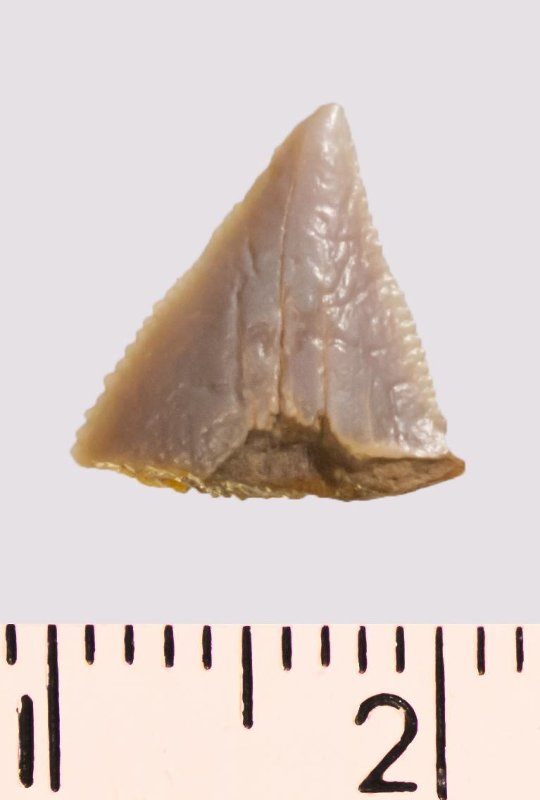 Зуб (фрагмент). Акула. Anacorax kaupi (Agassiz, 1843). Классификация: Хордовые Chordata, Позвоночные Vertebrata, Хрящевые рыбы Chondrichthyes, Пластиножаберные Elasmobranchii