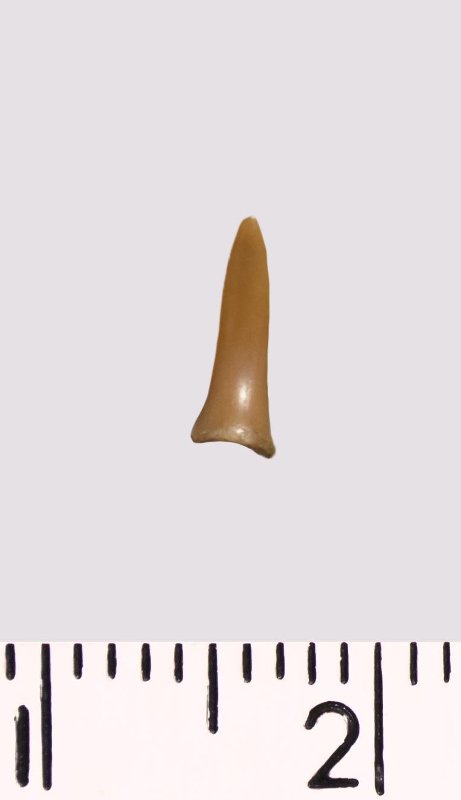 Зуб (фрагмент). Акула. Odontaspis aff. subulata (Agassiz, 1843). Классификация: Хордовые Chordata, Позвоночные Vertebrata, Хрящевые рыбы Chondrichthyes, Пластиножаберные Elasmobranchii