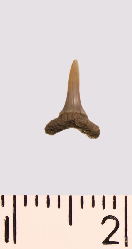 Зуб. Акула. Scapanorhynchus rhaphiodon Agassiz, 1843. Классификация: Хордовые Chordata, Позвоночные Vertebrata, Хрящевые рыбы Chondrichthyes, Пластиножаберные Elasmobranchii