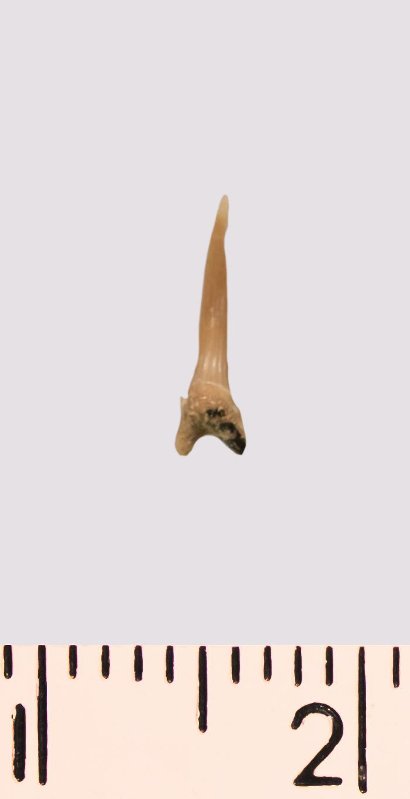 Зуб. Акула. Scapanorhynchus rhaphiodon Agassiz, 1843. Классификация: Хордовые Chordata, Позвоночные Vertebrata, Хрящевые рыбы Chondrichthyes, Пластиножаберные Elasmobranchii