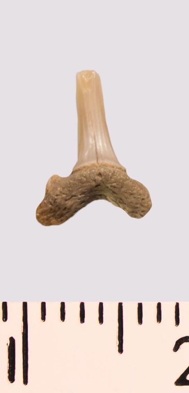 Зуб. Акула. Scapanorhynchus rhaphiodon Agassiz, 1843. Классификация: Хордовые Chordata, Позвоночные Vertebrata, Хрящевые рыбы Chondrichthyes, Пластиножаберные Elasmobranchii