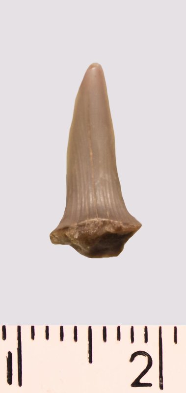 Зуб (фрагмент). Акула. Scapanorhynchus rapax Quaas, 1902. Классификация: Хордовые Chordata, Позвоночные Vertebrata, Хрящевые рыбы Chondrichthyes, Пластиножаберные Elasmobranchii