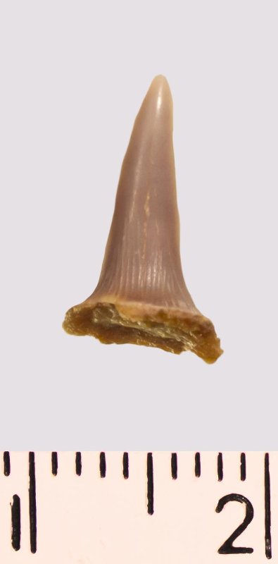 Зуб (фрагмент). Акула. Scapanorhynchus rapax Quaas, 1902. Классификация: Хордовые Chordata, Позвоночные Vertebrata, Хрящевые рыбы Chondrichthyes, Пластиножаберные Elasmobranchii