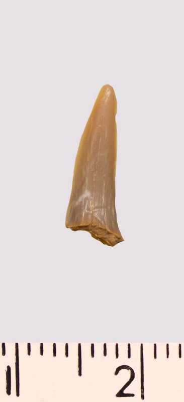 Зуб (фрагмент). Акула. Scapanorhynchus rapax Quaas, 1902. Классификация: Хордовые Chordata, Позвоночные Vertebrata, Хрящевые рыбы Chondrichthyes, Пластиножаберные Elasmobranchii