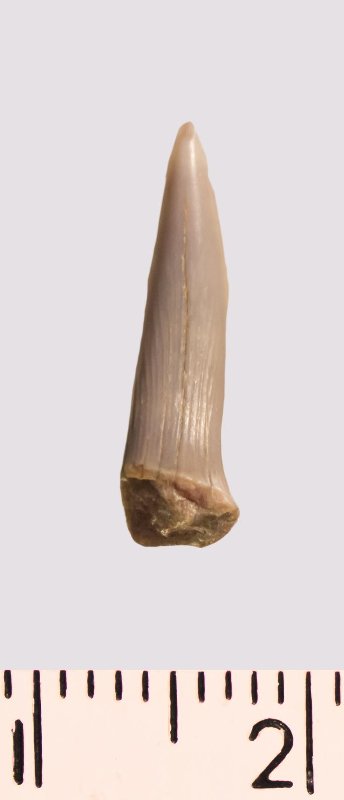 Зуб (фрагмент). Акула. Scapanorhynchus rapax Quaas, 1902. Классификация: Хордовые Chordata, Позвоночные Vertebrata, Хрящевые рыбы Chondrichthyes, Пластиножаберные Elasmobranchii