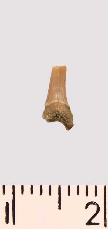 Зуб. Акула. Scapanorhynchus rhaphiodon Agassiz, 1843. Классификация: Хордовые Chordata, Позвоночные Vertebrata, Хрящевые рыбы Chondrichthyes, Пластиножаберные Elasmobranchii