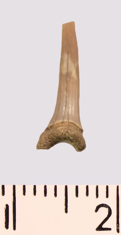 Зуб. Акула. Scapanorhynchus rhaphiodon Agassiz, 1843. Классификация: Хордовые Chordata, Позвоночные Vertebrata, Хрящевые рыбы Chondrichthyes, Пластиножаберные Elasmobranchii