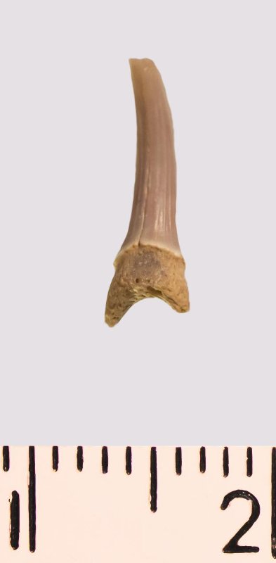 Зуб. Акула. Scapanorhynchus rhaphiodon Agassiz, 1843. Классификация: Хордовые Chordata, Позвоночные Vertebrata, Хрящевые рыбы Chondrichthyes, Пластиножаберные Elasmobranchii
