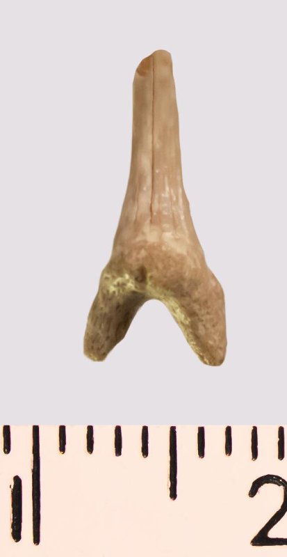 Зуб. Акула. Scapanorhynchus rhaphiodon Agassiz, 1843. Классификация: Хордовые Chordata, Позвоночные Vertebrata, Хрящевые рыбы Chondrichthyes, Пластиножаберные Elasmobranchii