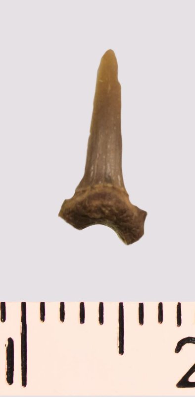 Зуб. Акула. Scapanorhynchus rhaphiodon Agassiz, 1843. Классификация: Хордовые Chordata, Позвоночные Vertebrata, Хрящевые рыбы Chondrichthyes, Пластиножаберные Elasmobranchii