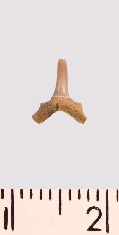 Зуб. Акула. Scapanorhynchus rhaphiodon Agassiz, 1843. Классификация: Хордовые Chordata, Позвоночные Vertebrata, Хрящевые рыбы Chondrichthyes, Пластиножаберные Elasmobranchii