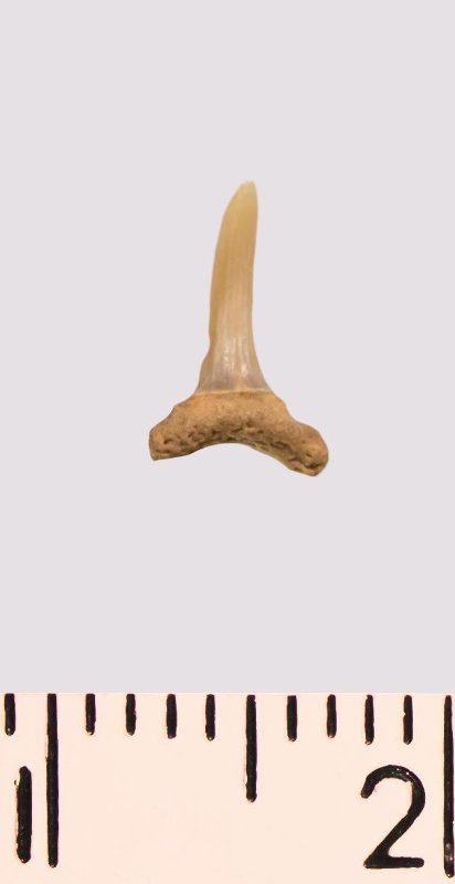 Зуб. Акула. Scapanorhynchus rhaphiodon Agassiz, 1843. Классификация: Хордовые Chordata, Позвоночные Vertebrata, Хрящевые рыбы Chondrichthyes, Пластиножаберные Elasmobranchii