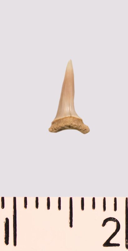 Зуб. Акула. Scapanorhynchus rhaphiodon Agassiz, 1843. Классификация: Хордовые Chordata, Позвоночные Vertebrata, Хрящевые рыбы Chondrichthyes, Пластиножаберные Elasmobranchii