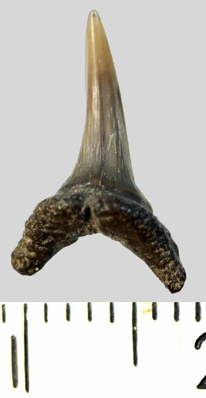 Зуб. Акула. Odontaspis subulata (Agassiz, 1843). Классификация: Хордовые Chordata, Позвоночные Vertebrata, Хрящевые рыбы Chondrichthyes, Пластиножаберные Elasmobranchii, Акулы Selachii, Ламнообразные Lamniformes