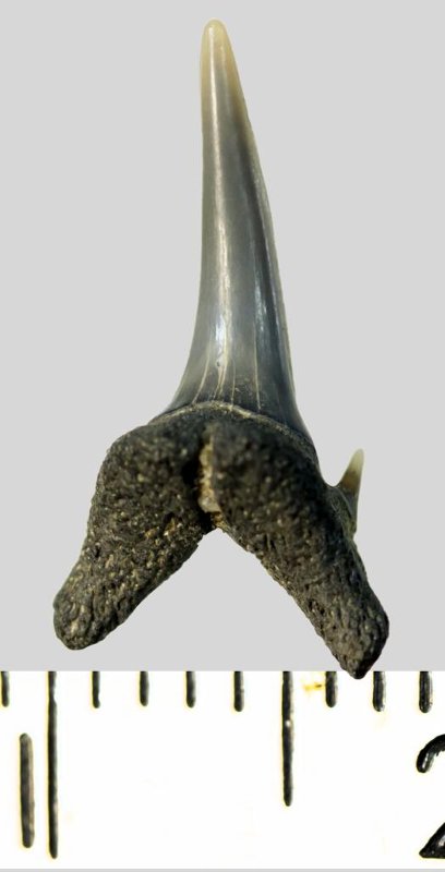 Зуб. Акула. Odontaspis subulata (Agassiz, 1843). Классификация: Хордовые Chordata, Позвоночные Vertebrata, Хрящевые рыбы Chondrichthyes, Пластиножаберные Elasmobranchii, Акулы Selachii, Ламнообразные Lamniformes