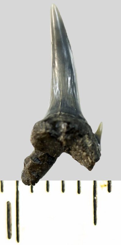 Зуб. Акула. Odontaspis subulata (Agassiz, 1843). Классификация: Хордовые Chordata, Позвоночные Vertebrata, Хрящевые рыбы Chondrichthyes, Пластиножаберные Elasmobranchii, Акулы Selachii, Ламнообразные Lamniformes