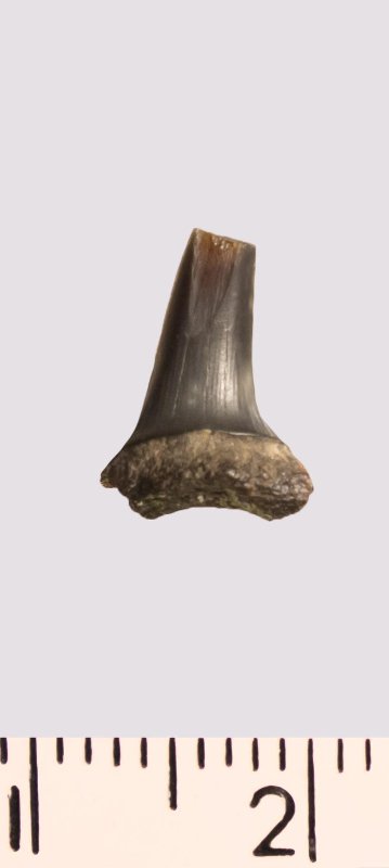 Зуб (фрагмент). Акула. Rhaphiodus sp. Классификация: Хордовые Chordata, Позвоночные Vertebrata, Хрящевые рыбы Chondrichthyes, Пластиножаберные Elasmobranchii