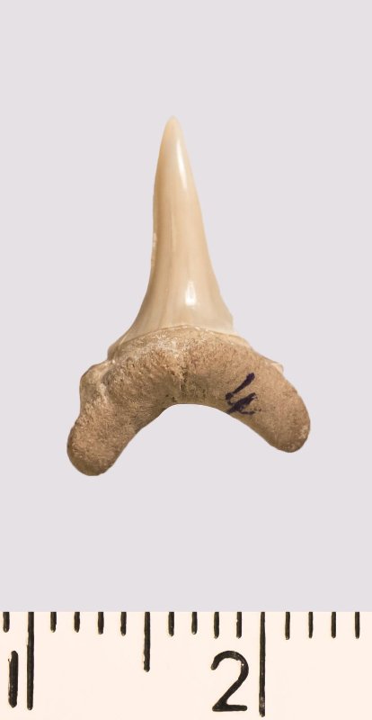 Зуб. Акула. Odontaspis venusta (Leriche, 1929). Классификация: Хордовые Chordata, Позвоночные Vertebrata, Хрящевые рыбы Chondrichthyes, Пластиножаберные Elasmobranchii