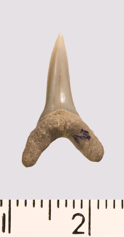 Зуб. Акула. Odontaspis venusta (Leriche, 1929). Классификация: Хордовые Chordata, Позвоночные Vertebrata, Хрящевые рыбы Chondrichthyes, Пластиножаберные Elasmobranchii