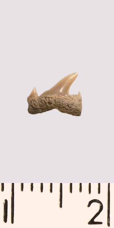 Зуб. Акула. Odontaspis venusta (Leriche, 1929). Классификация: Хордовые Chordata, Позвоночные Vertebrata, Хрящевые рыбы Chondrichthyes, Пластиножаберные Elasmobranchii