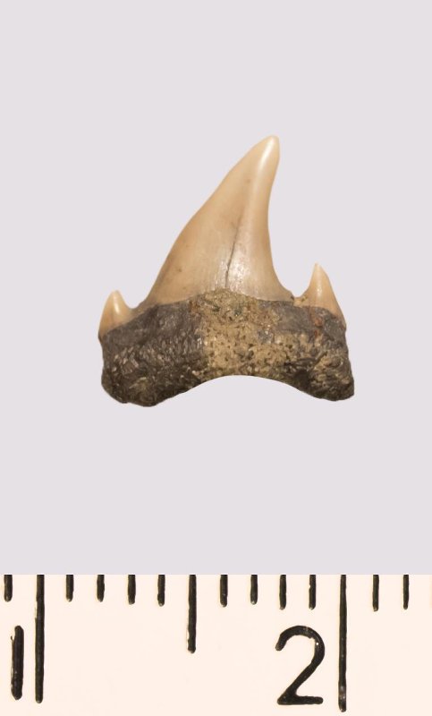 Зуб. Акула. Odontaspis venusta (Leriche, 1929). Классификация: Хордовые Chordata, Позвоночные Vertebrata, Хрящевые рыбы Chondrichthyes, Пластиножаберные Elasmobranchii