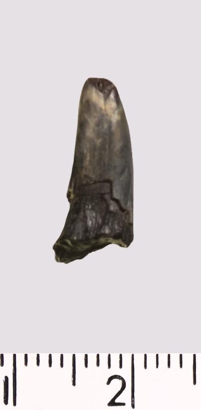 Зуб (фрагмент). Акула. Scapanorhynchus gigas Woodward, 1889. Классификация: Хордовые Chordata, Позвоночные Vertebrata, Хрящевые рыбы Chondrichthyes, Пластиножаберные Elasmobranchii