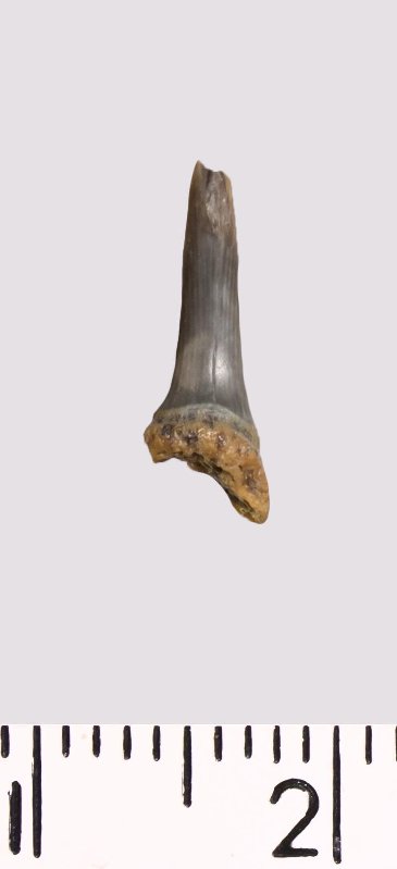 Зуб. Акула. Scapanorhynchus rhaphiodon Agassiz, 1843. Классификация: Хордовые Chordata, Позвоночные Vertebrata, Хрящевые рыбы Chondrichthyes, Пластиножаберные Elasmobranchii