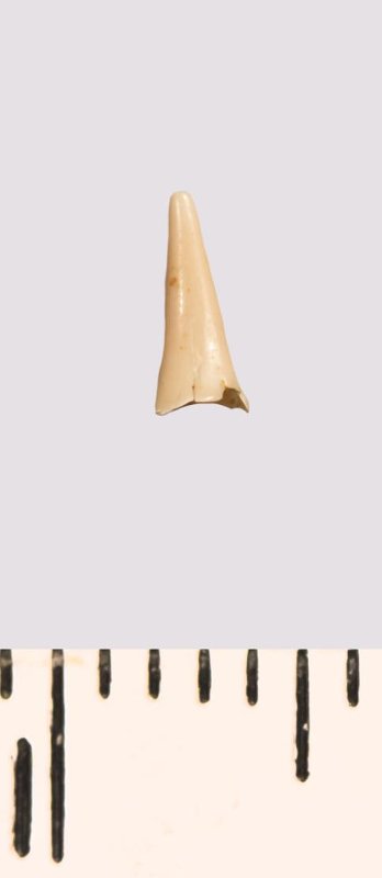 Зуб (фрагмент). Акула. Scapanorhynchus gracilis (Davis, 1890). Классификация: Хордовые Chordata, Позвоночные Vertebrata, Хрящевые рыбы Chondrichthyes, Пластиножаберные Elasmobranchii