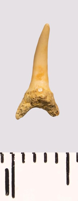 Зуб. Акула. Scapanorhynchus gracilis (Davis, 1890). Классификация: Хордовые Chordata, Позвоночные Vertebrata, Хрящевые рыбы Chondrichthyes, Пластиножаберные Elasmobranchii