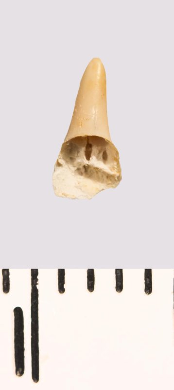 Зуб (фрагмент). Акула. Synechodus sp. Классификация: Хордовые Chordata, Позвоночные Vertebrata, Хрящевые рыбы Chondrichthyes, Пластиножаберные Elasmobranchii