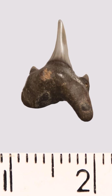Зуб. Акула. Odontaspis macrorhiza (Cope) Leriche, 1902. Классификация: Хордовые Chordata, Позвоночные Vertebrata, Хрящевые рыбы Chondrichthyes, Пластиножаберные Elasmobranchii