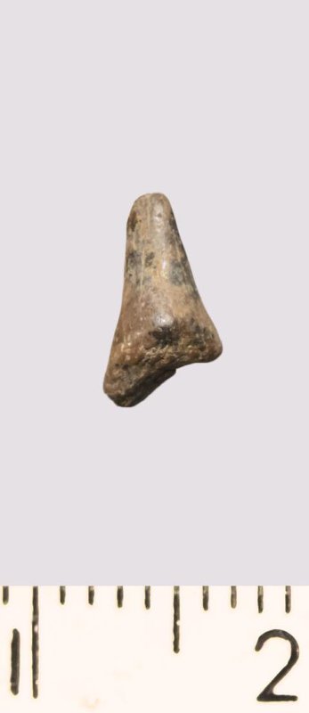 Зуб (фрагмент). Акула. Scapanorhynchus ex. gr. rhaphiodon Agassiz, 1843. Классификация: Хордовые Chordata, Позвоночные Vertebrata, Хрящевые рыбы Chondrichthyes, Пластиножаберные Elasmobranchii