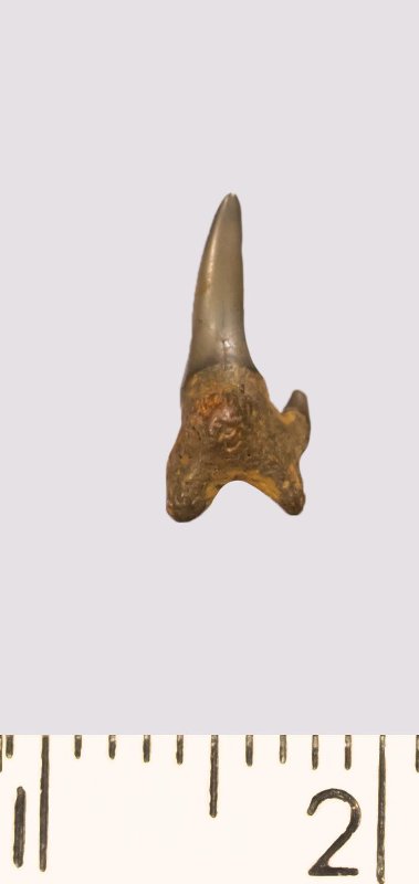 Зуб. Акула. Odontaspis macrorhiza (Cope) Leriche, 1902. Классификация: Хордовые Chordata, Позвоночные Vertebrata, Хрящевые рыбы Chondrichthyes, Пластиножаберные Elasmobranchii