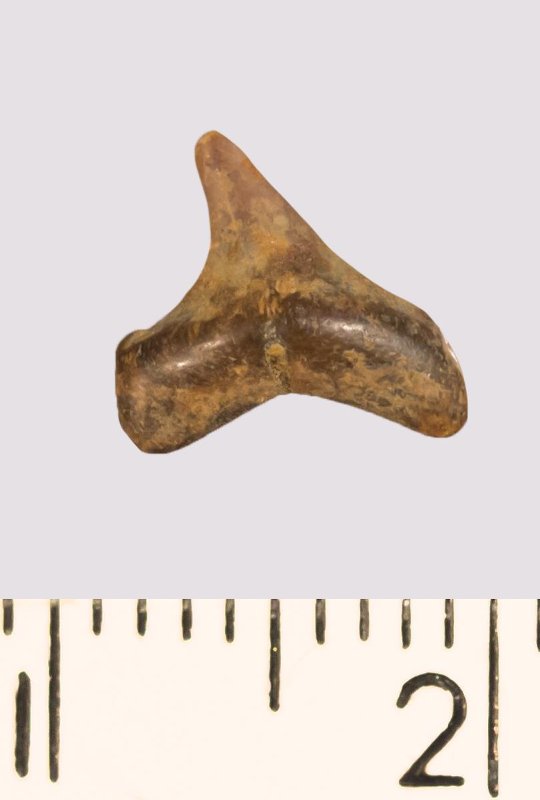 Зуб. Акула. Eostriatolamia venusta Leriche, 1906. Классификация: Хордовые Chordata, Позвоночные Vertebrata, Хрящевые рыбы Chondrichthyes, Пластиножаберные Elasmobranchii