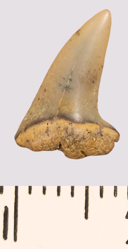 Зуб (фрагмент). Акула. Lamniformes gen. et sp. indet. Классификация: Хордовые Chordata, Позвоночные Vertebrata, Хрящевые рыбы Chondrichthyes, Пластиножаберные Elasmobranchii