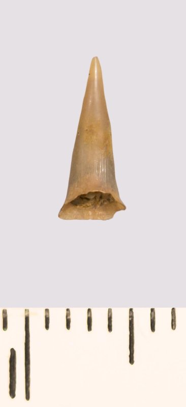 Зуб (фрагмент). Акула. Eostriatolamia sp. Классификация: Хордовые Chordata, Позвоночные Vertebrata, Хрящевые рыбы Chondrichthyes, Пластиножаберные Elasmobranchii