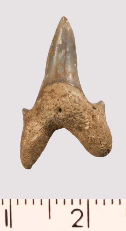 Зуб. Акула. Odontaspis macrorhiza (Cope) Leriche, 1902. Классификация: Хордовые Chordata, Позвоночные Vertebrata, Хрящевые рыбы Chondrichthyes, Пластиножаберные Elasmobranchii