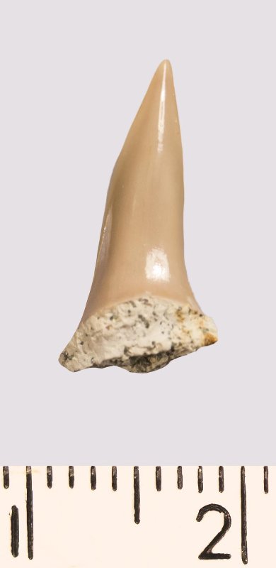 Зуб (фрагмент). Акула. Lamniformes gen. et sp. indet. Классификация: Хордовые Chordata, Позвоночные Vertebrata, Хрящевые рыбы Chondrichthyes, Пластиножаберные Elasmobranchii