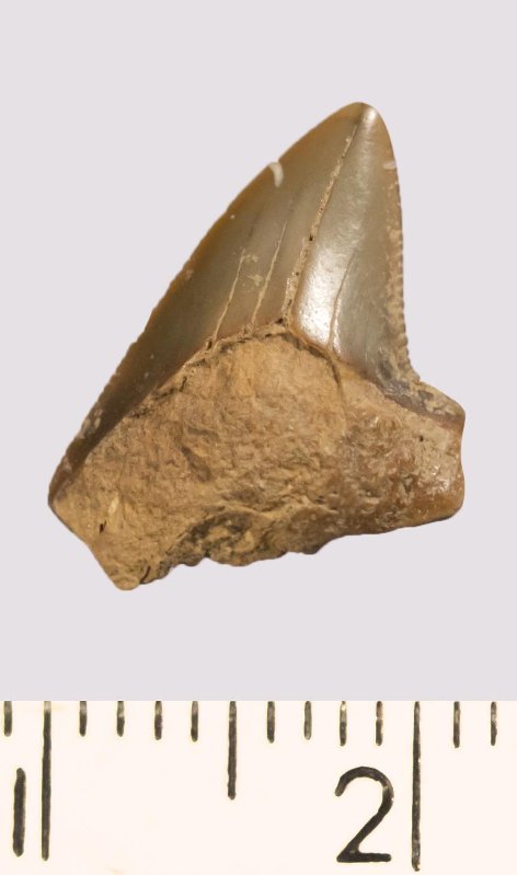 Зуб (фрагмент). Акула. Anacorax santonicus Glueckman et Zelezko,1980. Классификация: Хордовые Chordata, Позвоночные Vertebrata, Хрящевые рыбы Chondrichthyes, Пластиножаберные Elasmobranchii