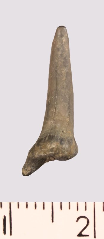 Зуб (фрагмент). Акула. Scapanorhynchus sp. Классификация: Хордовые Chordata, Позвоночные Vertebrata, Хрящевые рыбы Chondrichthyes, Пластиножаберные Elasmobranchii