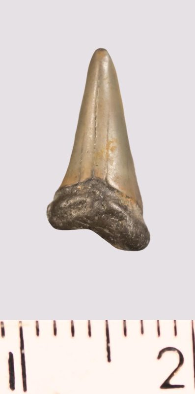 Зуб (фрагмент). Акула. Odontaspis macrorhiza (Cope) Leriche, 1902. Классификация: Хордовые Chordata, Позвоночные Vertebrata, Хрящевые рыбы Chondrichthyes, Пластиножаберные Elasmobranchii