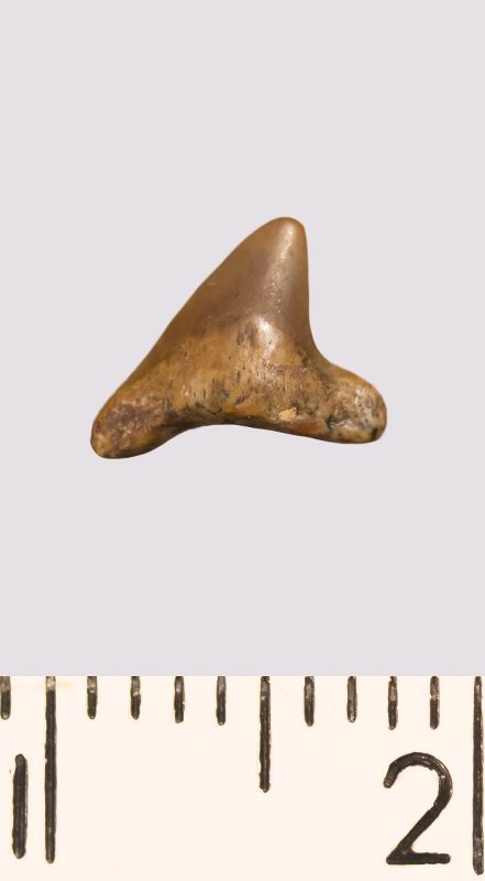 Зуб (фрагмент). Акула. Anacorax aff. praeyangaensis. Классификация: Хордовые Chordata, Позвоночные Vertebrata, Хрящевые рыбы Chondrichthyes, Пластиножаберные Elasmobranchii